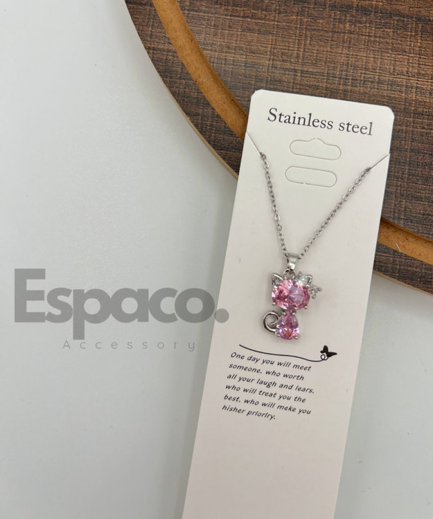 گردنبند استیل گربه صورتی کد A117