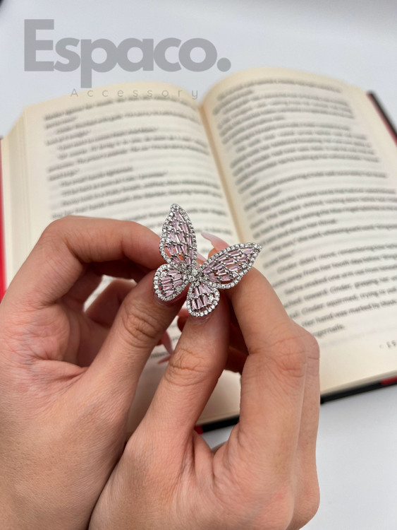 انگشتر جواهری پروانه صورتی سایز بزرگ کد A215