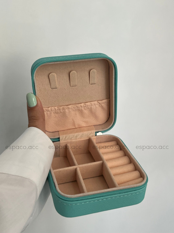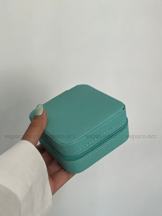 جعبه جواهرات (جا جواهری) چرمی مسافرتی فیروزه ای