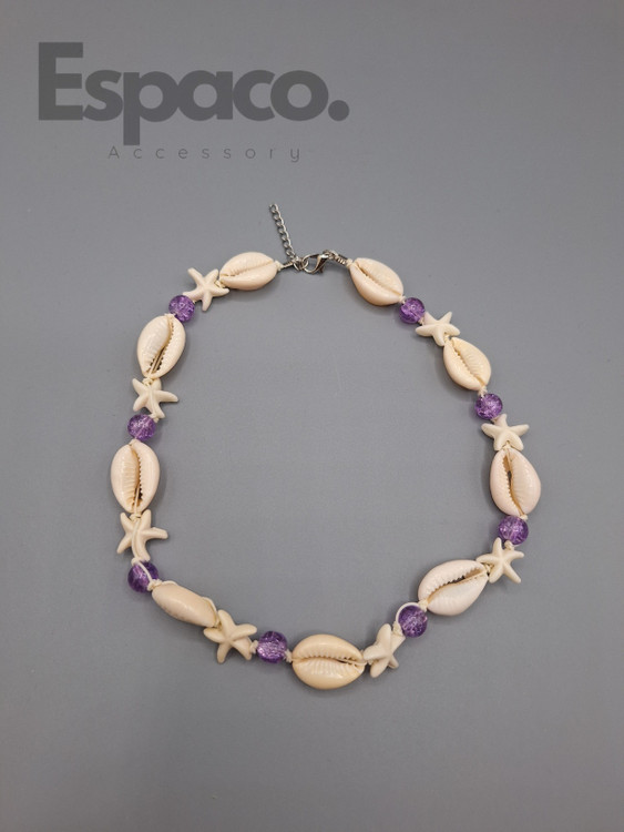 گردنبند صدف ستاره و مهره دار بنفش