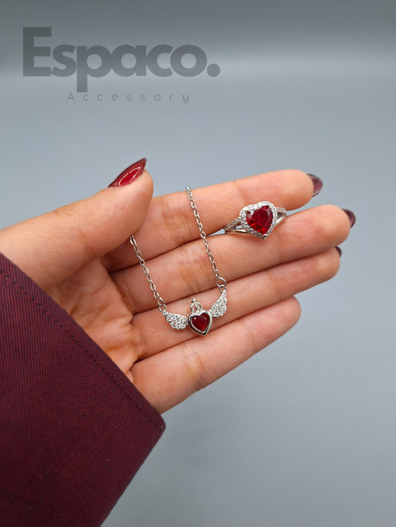 ست گردنبند و انگشتر قلب قرمز کد A275