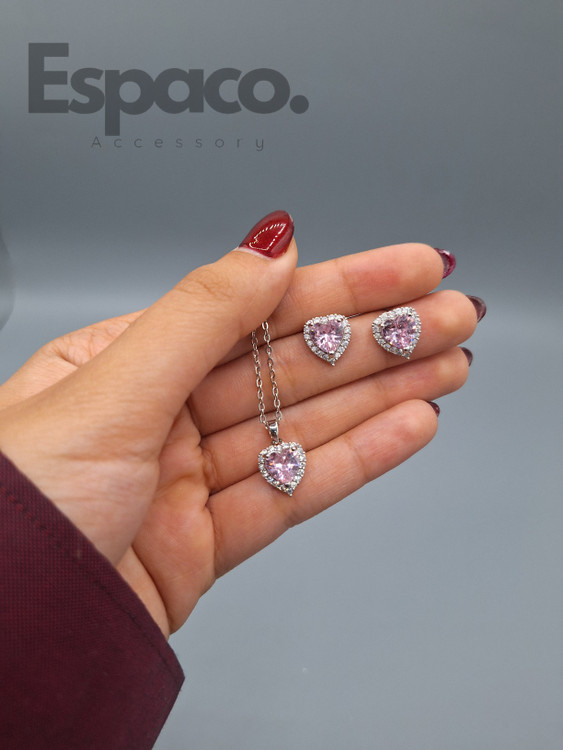 نیم ست جواهری قلب صورتی کد A285