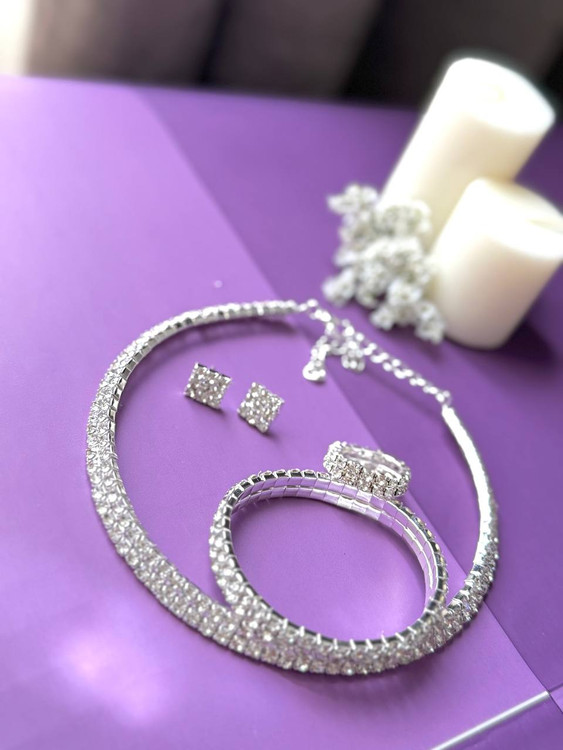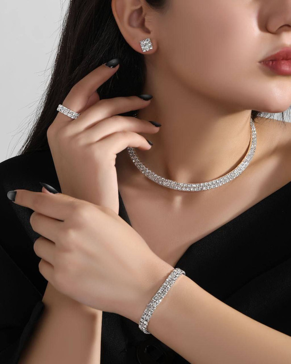 شامل یک گردنبند، دستبند، یک جفت گوشواره، انگشتر