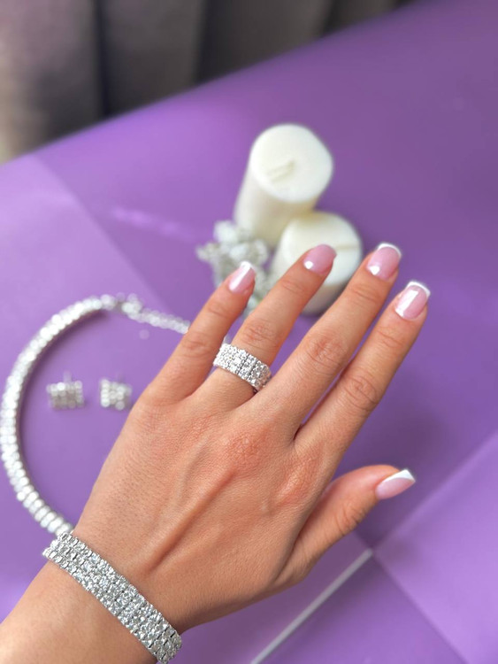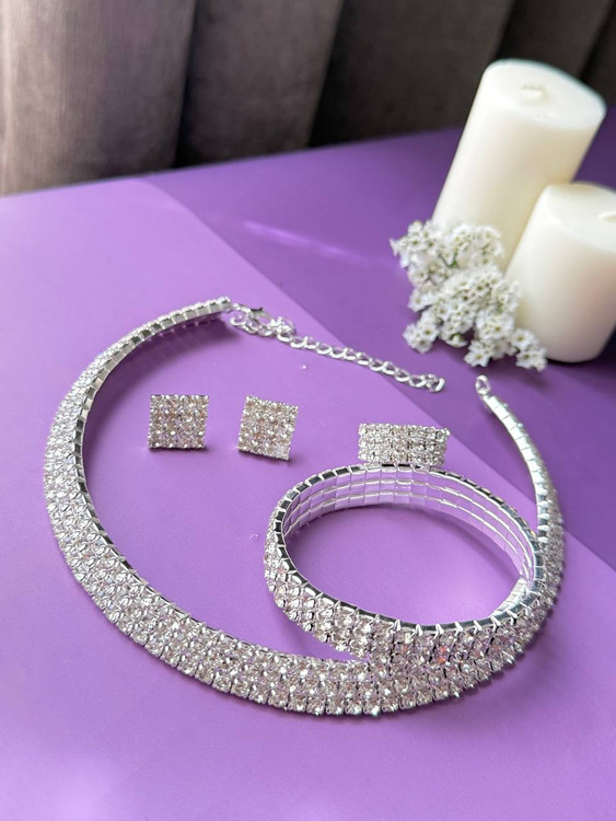 شامل یک گردنبند، دستبند، یک جفت گوشواره، انگشتر