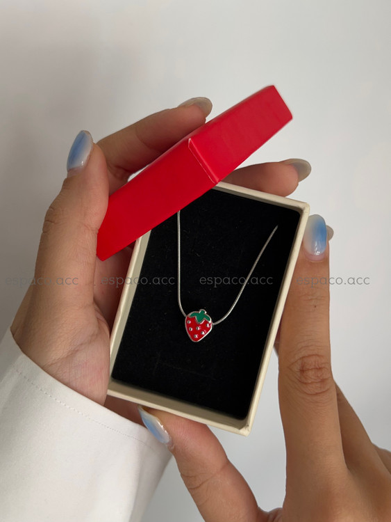 گردنبند توت فرنگی قرمز نقره ای🍓