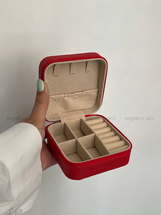 جعبه جواهرات (جا جواهری) چرمی مسافرتی قرمز