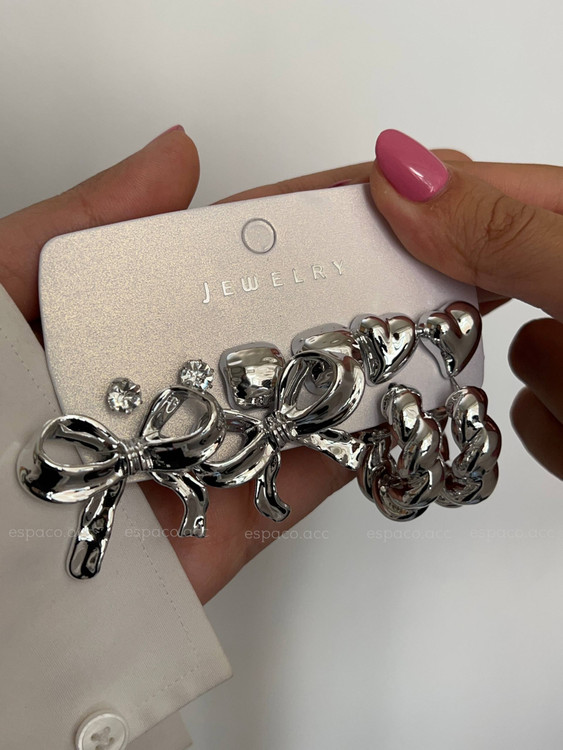 پک گوشواره ۶ تایی پاپیون نقره ای✨️