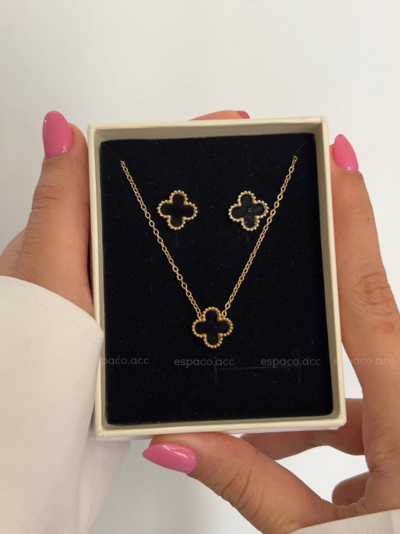 نیم ست گردنبند و گوشواره ونکلیف مشکی طلایی✨️🖤