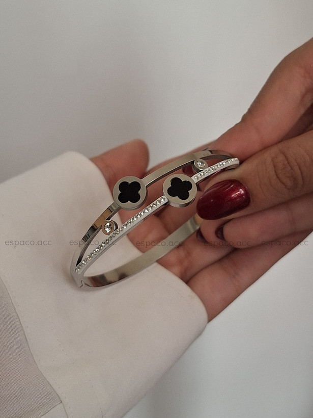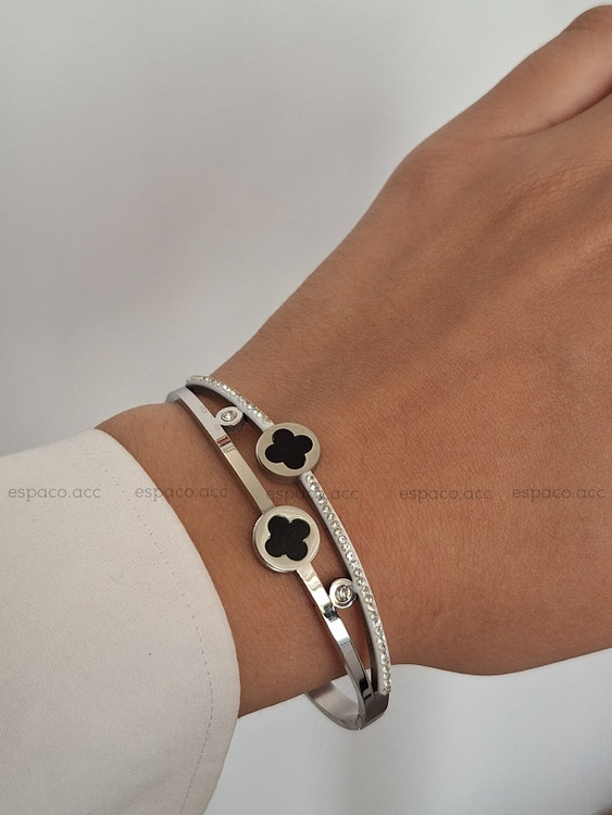 بنگل مینیمال استیل ونکلیف مشکی نقره ای✨️