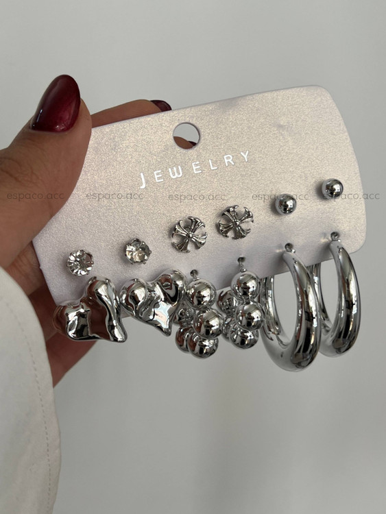 پک گوشواره ۶ تایی قلبی نقره ای✨️