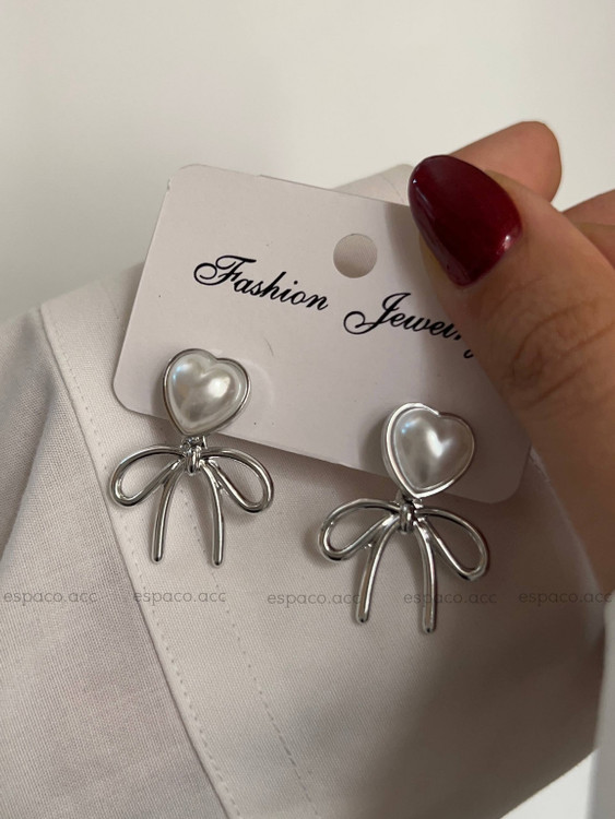 گوشواره پاپیون نقره ای با مروارید قلبی💫