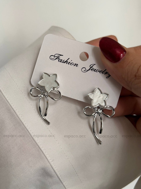گوشواره پاپیون نقره ای با ستاره صدفی💫