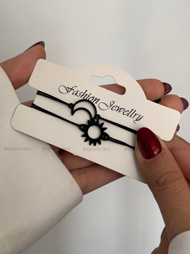 پک دستبند ست دو نفره و دوستانه ماه و خورشید مشکی🤍