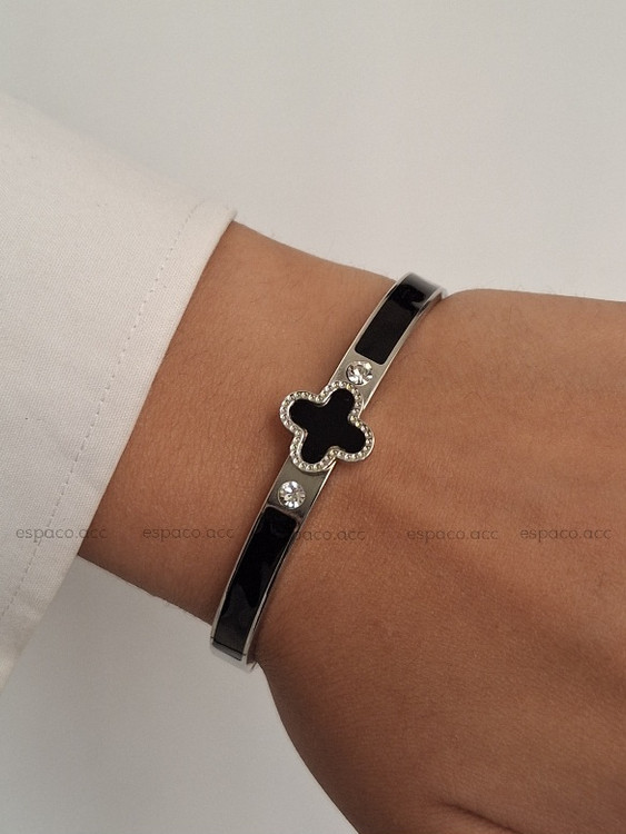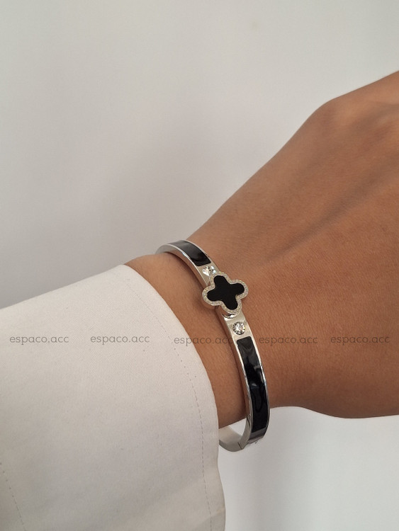 بنگل مینیمال استیل ونکلیف مشکی نقره ای✨️