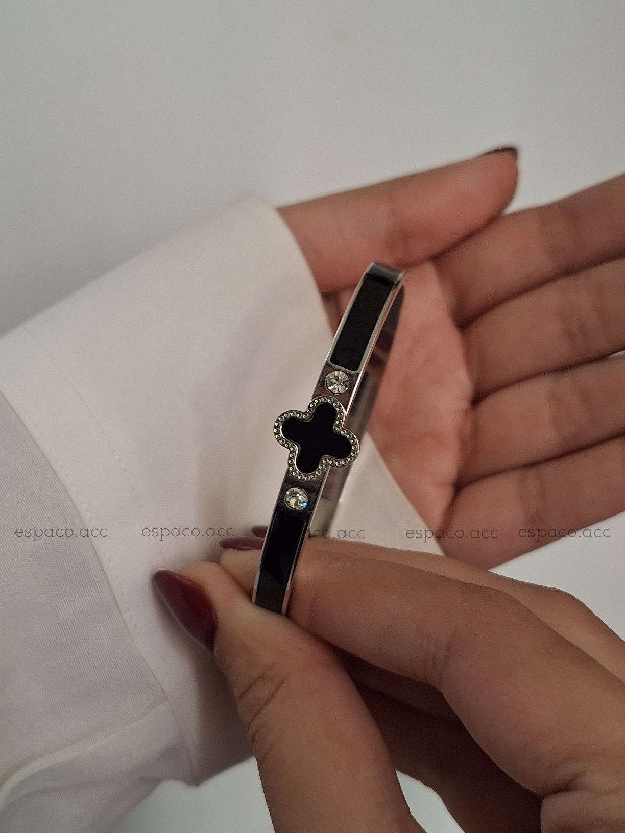 بنگل مینیمال استیل ونکلیف مشکی نقره ای✨️