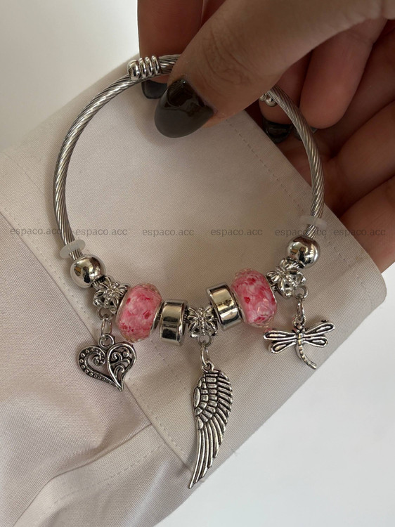 دستبند پاندورا بال و قلب صورتی کد A648