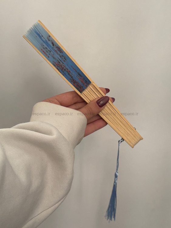 بادبزن دسته چوبی آبی آسمانی کد A728